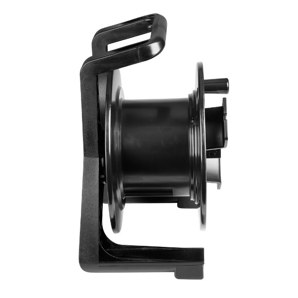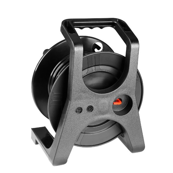 Rugged cable drum made of special shatter-proof plastic Ergonomically milled handle Parking brake Removable cable guide Weight only 1.2 kg