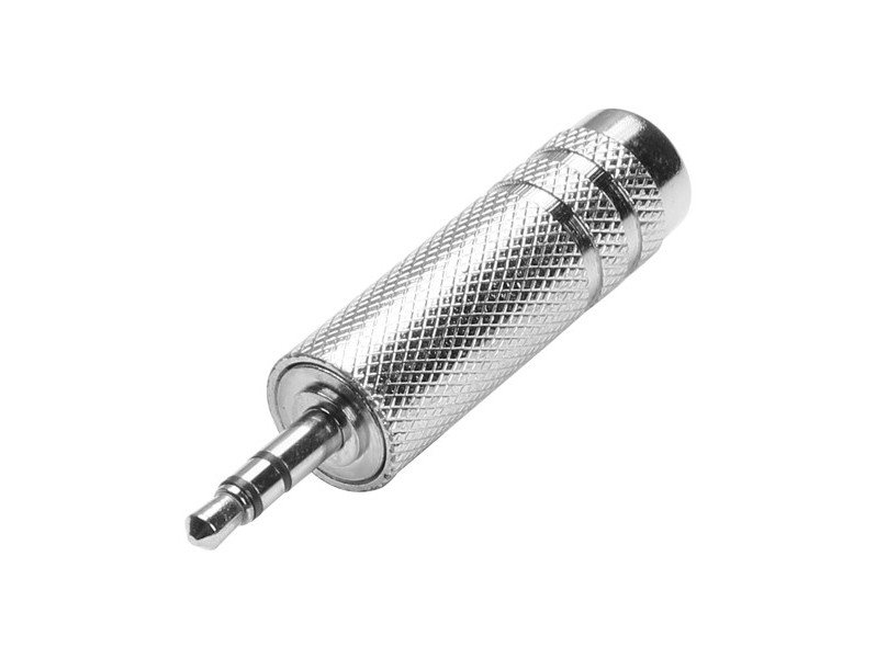 1/4″ (6.35 mm) stereo input to 3.5 mm stereo jack plug Rugged metal shell