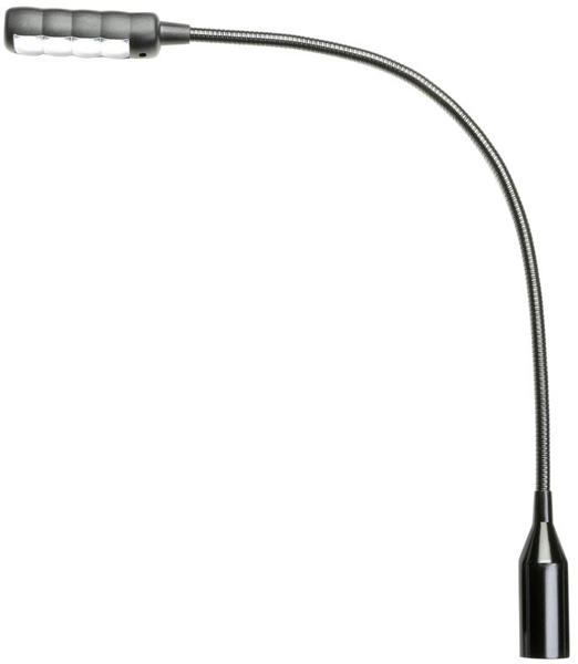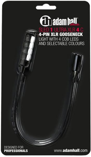 Adam Hall SLED 1 ULTRA XLR 4 C – 4-pin XLR Gooseneck Light with 4 COB LEDs and selectable colours 4 long life COB LEDs with selectable colours 4-pin male XLR connector and on/off switch For use with 12 volt task light and 48 volt phantom power
