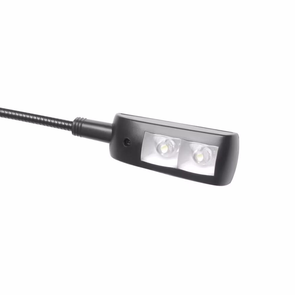 The 2 bright and efficient LEDs can be switched individually between 2 brightness levels. Also, the light cone is adjustable thanks to the flexible 200 mm long gooseneck.