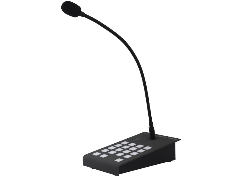 The APM116 is a digital paging microphone for 16 zones, which is equipped with a condenser element with cardiologic characteristics, mounted on a 30 cm gooseneck.