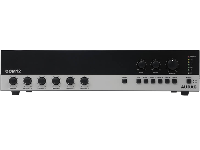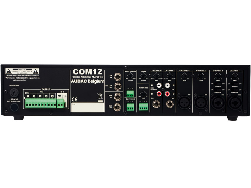 The COM12 is a public address amplifier, with a power up to 120 W.