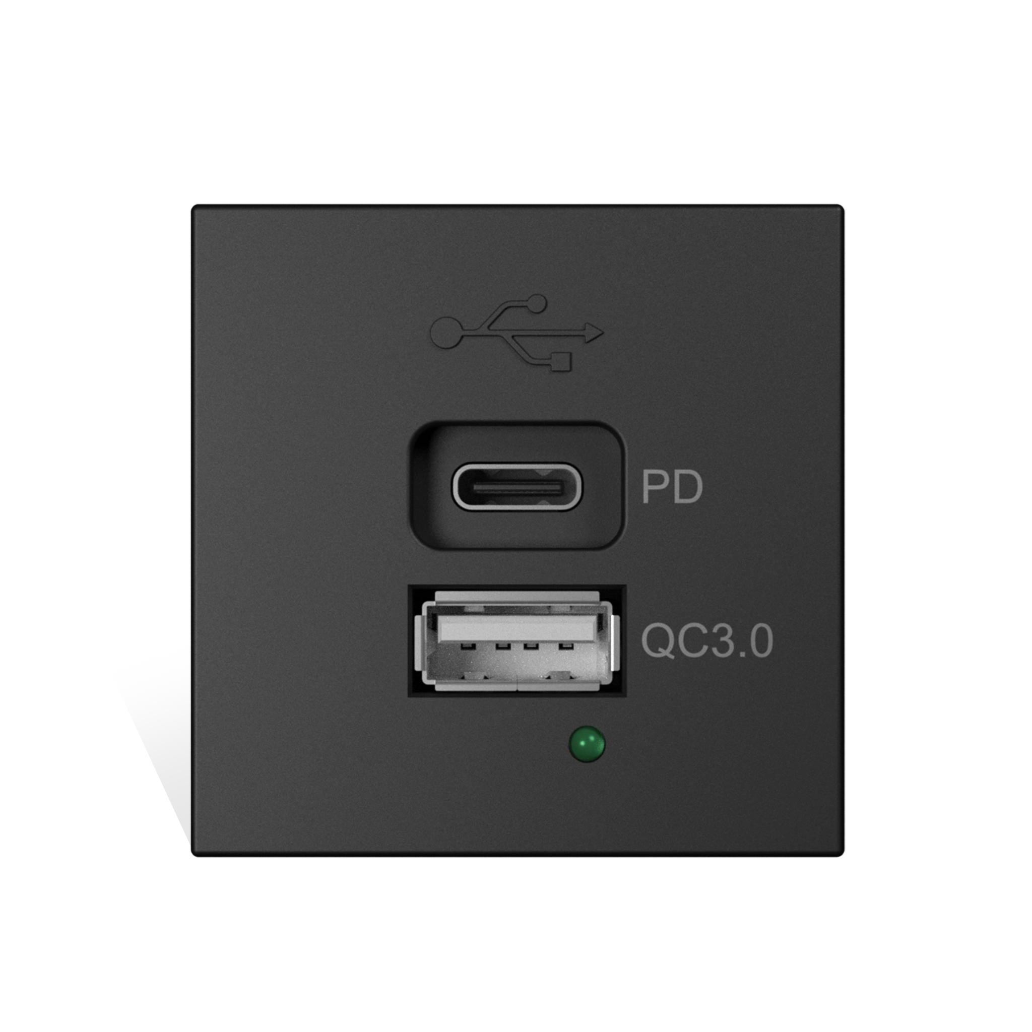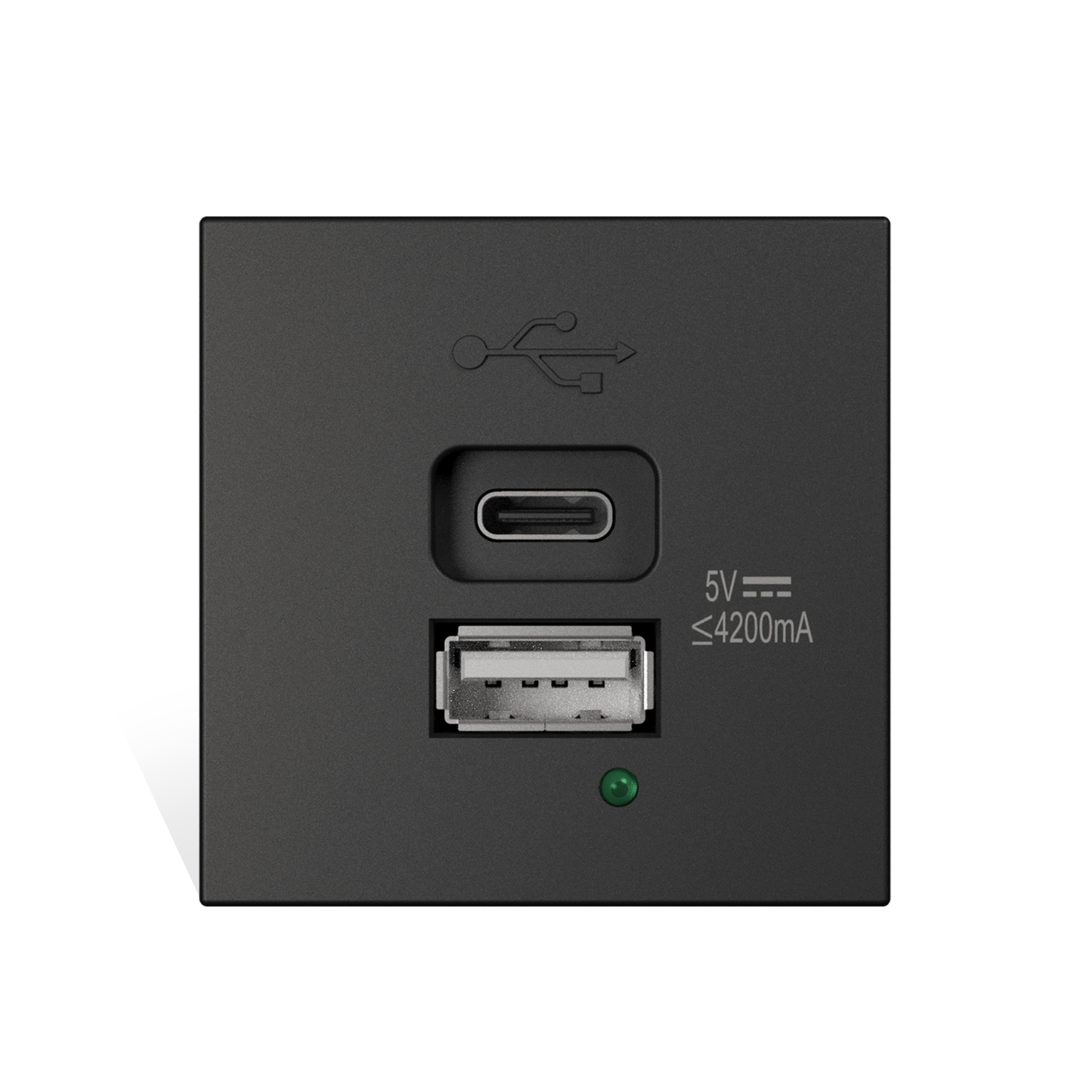 CP45PUSB is a 45 x 45 mm charger module with one USB type A and type C output socket available in black color & 2 versions. This module is compatible with CAYMON CASY303 and standard 45 x 45 mm mounting frames and cover plates