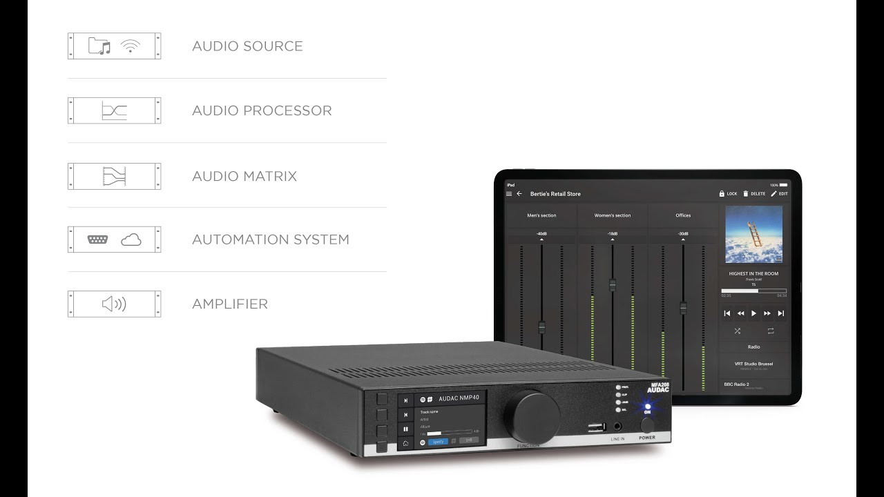 All-in-one audio solution – 2 x 40W @ 4 Ohm – 80W @ 70/100V