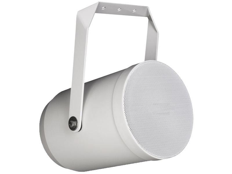 Broadband Sound Projector – 100 Volt 20 Watt RMS. Weatherproof. Made out of white ABS housing. Supplied with stainless steel bracket and inox screws. Fitted with broadband loudspeaker. 75 cm connection cable. Aluminium grill. Adjustable power tapping. IP 56