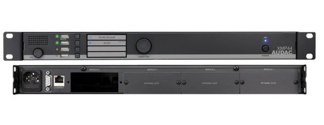 XMP44 is a professional modular audio system with 4 SourceCon™ interface card slots where to a wide variation of optional modules can be installed. The variety of available modules ranges from FM tuners to DAB&DAB+ tuners, internet radio tuners, voice file interfaces and many more