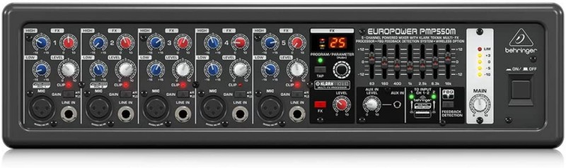 500-Watt 5-Channel Powered Mixer with Klark Teknik Multi-FX Processor, FBQ Feedback Detection System and Wireless Option Ultra-compact 500-Watt powered mixer Revolutionary Class-D amplifier technology: enormous power, incredible sonic performance and super-light weight Ultra-high quality KLARK TEKNIK FX processor with 25 presets including reverb, chorus, flanger, delay, pitch shifter and various multi-effects Revolutionary FBQ Feedback Detection system instantly reveals critical frequencies for easy feedback removal “Wireless-ready” for high-quality BEHRINGER digital wireless system (not included)