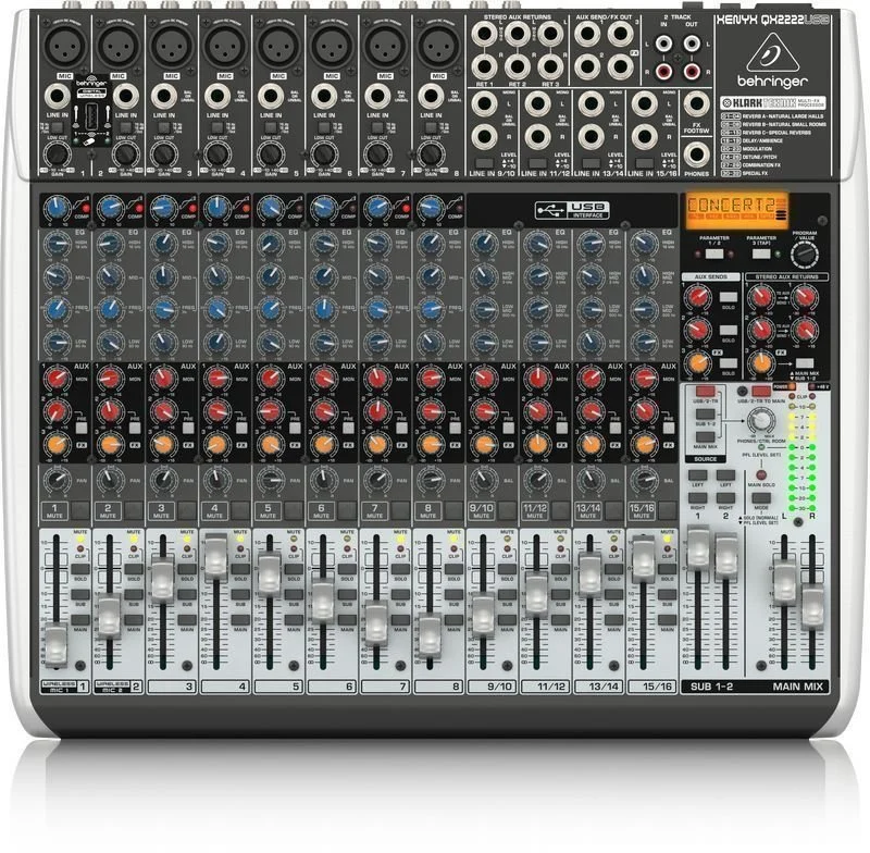 8 Mic inputs with +48 V phantom power and 75 Hz low cut