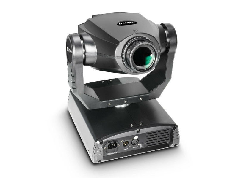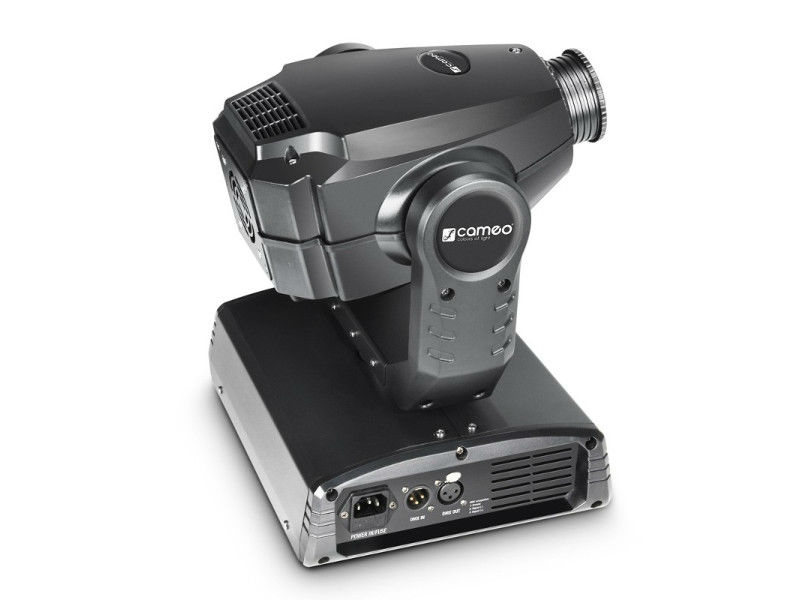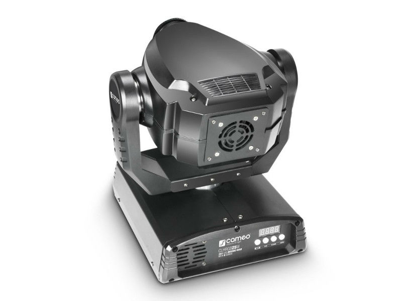 Cameo CLMHRGB25W is a compact lightweight moving head with a high-efficiency, low power consumption 25 Watt white LED featuring XLR connectors for DMX input and output, an IEC power socket and fan cooling.