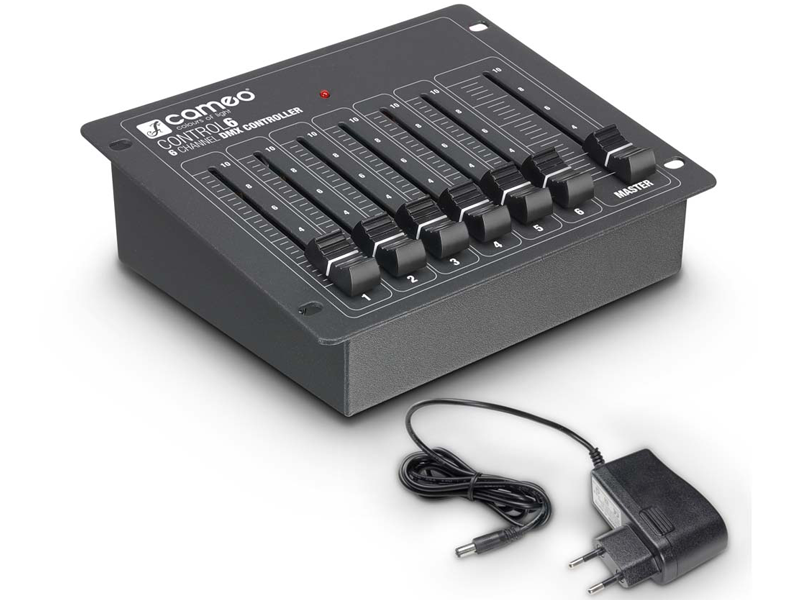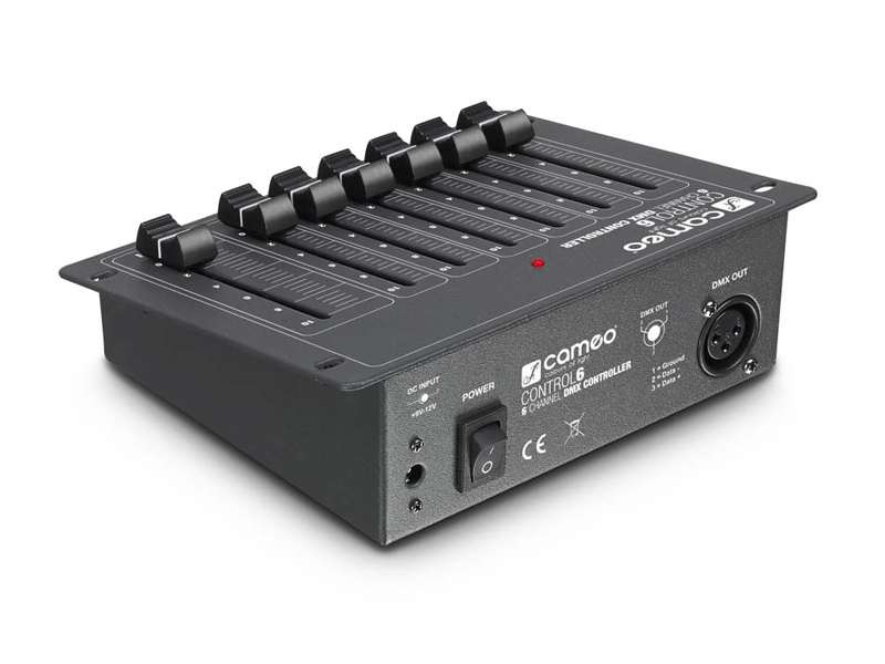 The Cameo CLCONTROL6 is an especially compact DMX controller with 6 channels that is perfect for controlling small lighting systems. It can be mounted in many ways and of course can also be used as a freestanding unit; it is extremely easy to operate.