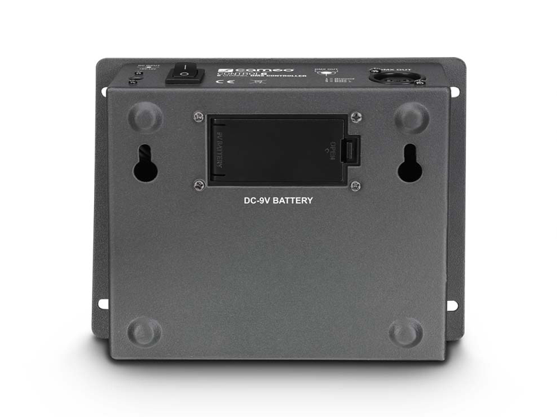 The CLCONTROL6 has 6 smoothly shifting faders for the individual DMX channels and a master fader. It can be powered using the included external power adapter or batteries and thus is universally useable for manual control of LED systems. A 3-pole XLR socket is used as the DMX output; a red LED serves as a power indicator. This straightforward lightweight impresses with clear functionality and high user friendliness.