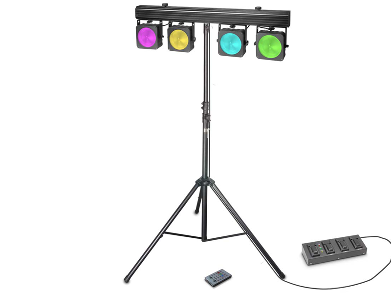 Set with 4 x 30 W RGB COB LED Lighting Set with Transport Case, 4 pedal Foot Switch and Stand