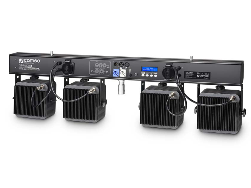 The Cameo CLMPARCOB1 is a compact and lightweight professional lighting system using modern chip-on-board LED technology, which is extremely durable and very energy efficient. The four flat PAR spotlights with a 50° beam angle are ultra bright 30 W COB LEDs designed for intensive RGB colour mixing and both horizontal and vertical alignment.