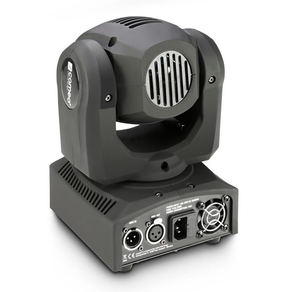 Cameo NanoBeam 300 is a miniature moving head equipped with a single 30 watt 4-in-1 Cree LED for colourful RGBW mixes. It features unlimited pan, 230° of tilt movement and a tightly focused 4° beam width. For amazing effects, a selectable inversion mode rotates the moving head in opposite directions when two NanoBeam 300 are used in tandem