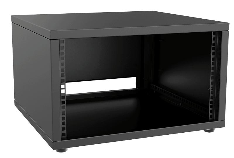 Stores up to 6 units of 19″ Equipment Cable entry on bottom Punched square holes for use with snap-in cage nuts 1.5 mm thick cold rolled steel frame Easy assembly in 5 minutes Removable rear panel