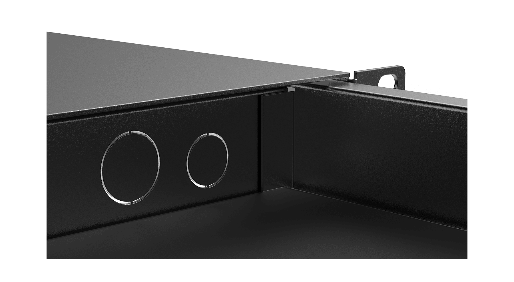 The chassis is constructed of 1,5 mm thick cold rolled steel, while the tray is finished in 1,2 mm thick cold rolled steel.