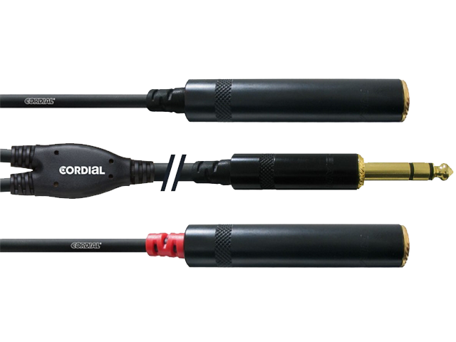 Adaptercable 1/4″ Jack Stereo – 2 x 1/4″ Female Jack Mono
