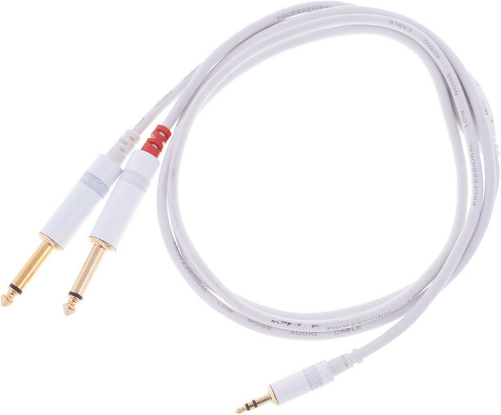 Y-Audio-Cable 2 x mono jack male –> mini-jack stereo male 2 x 0.18 mm² cable with white Neutrik/Rean-plugs