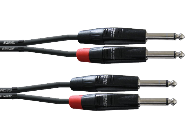 Stereo Starters: REAN/made by NEUTRIK metal connector, 2 x male jack to 2 x male jack, unbalanced twin bulk cables with sturdy jacket, flexibly separable due to innovative cutting point fixation clamps