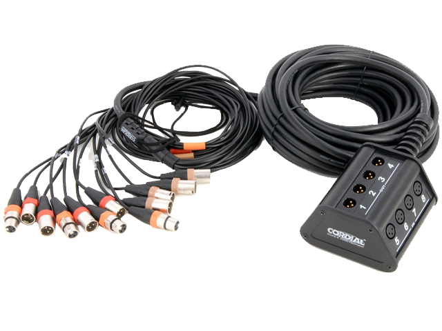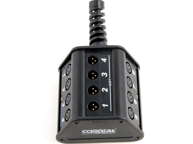 Trapezoid stagebox with Rean connectors and strain relief with break protection