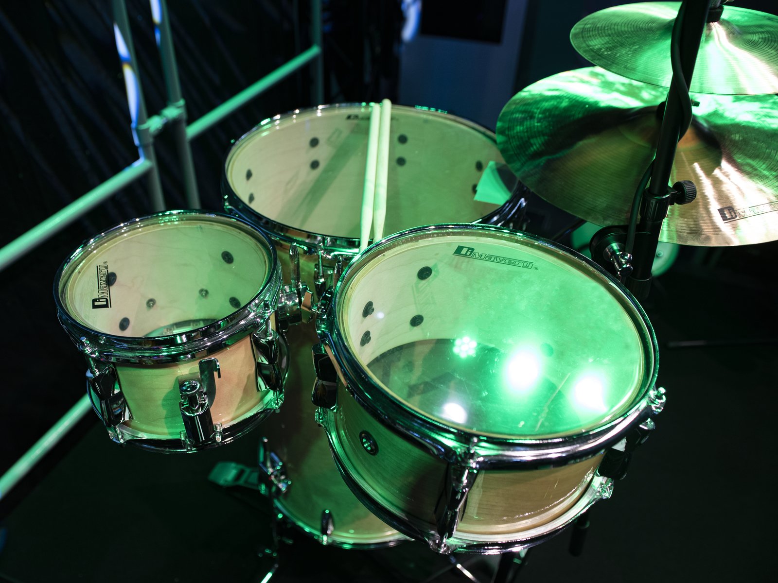 Drums: Snare-drum 8″ x 5,5″, Tom 10″ x 5″, Floortom 15″ x 25″