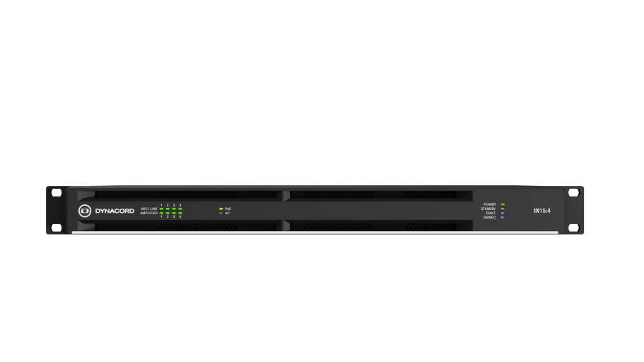 IX15:4 – 4-channel DSP networked amplifier, 1.5kW powerTANK, 4×4 Dante, OCA, 4 mic/line inputs
