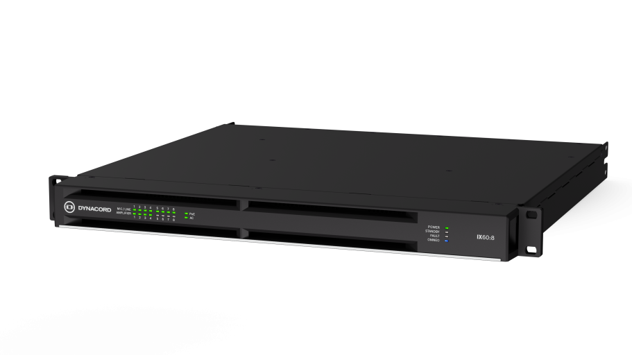 IX60:8 – 8-channel DSP networked amplifier, 6kW powerTANK, 8×8 Dante, OCA, 8 mic/line inputs
