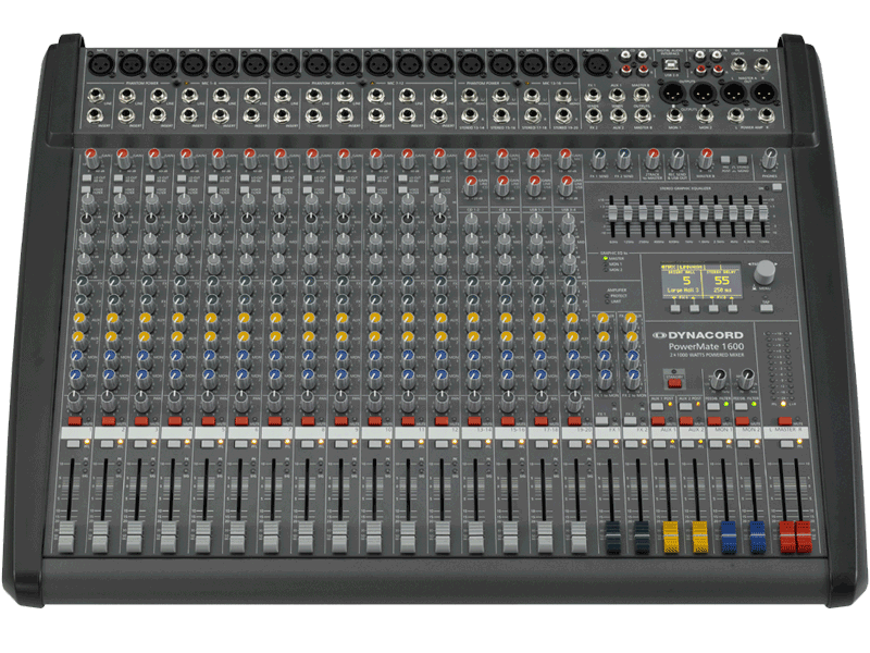 Channels (Mono + Stereo): 12 + 4. Auxiliaries (MON, FX, AUX): 2 Pre, 2 Post, 2 Pre/Post switchable. Maximum Midband Output Power,1 kHz, THD=1%, Dual Channel into 4 Ohms: 2 x 1000 W