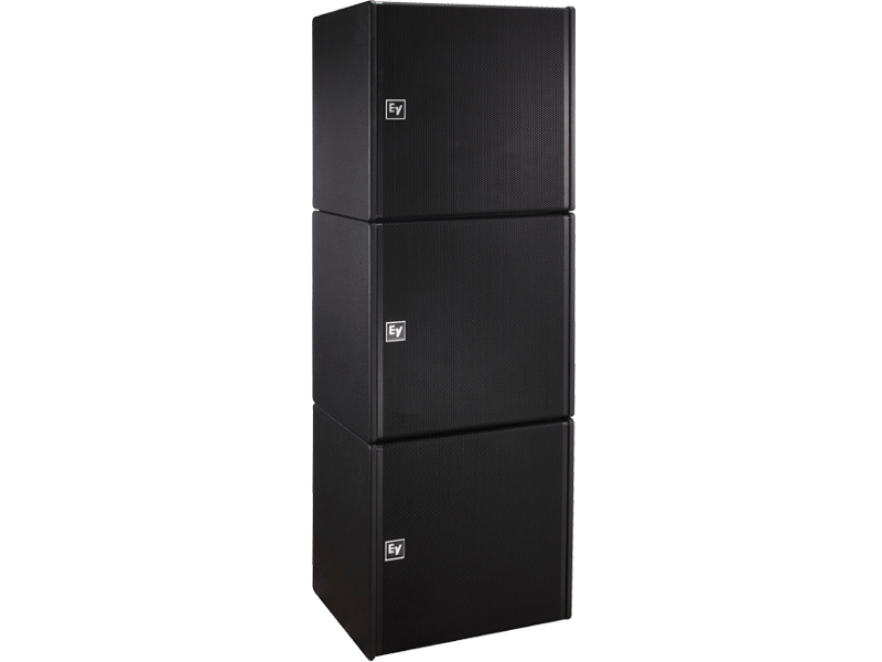 Dual 15-inch subwoofer line array element. High power, front loaded. Ideal for fixed installations. Seamless rigging with EVA line arrays. DVX3159A woofer for low distortion at high SPL. Steel-reinforced 13-ply birch enclosure. Two DVX3159A woofers for low distortion at high SPL. 100 dB sensitivity (1 W / 1 m half space). Power handling: 1000 W continuous, 4000 W peak. 130/136dB maximum SPL (continuous/peak). Choice of two finishes: EVCoat and PI