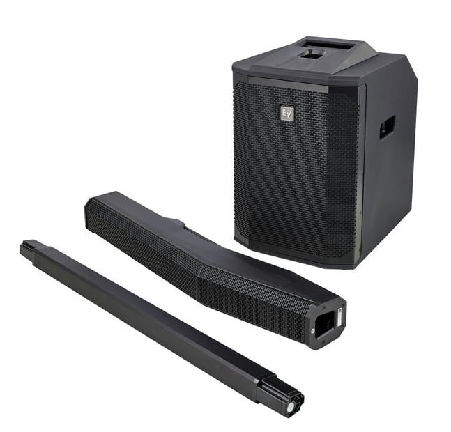 EV QuickSmart Mobile application: quickly and wirelessly configure, control, and monitor up to six EVOLVE 50 systems simultaneously, and receive immediate notification during critical performance conditions. Bluetooth® connectivity is available in select countries. High-quality Bluetooth® audio streaming for background music or musical accompaniment. Bluetooth® connectivity is available in select countries. Ultra-wide 120° horizontal coverage via custom designed waveguides and array-formed 40° asymmetrical vertical coverage means all acoustical energy is directed towards both sitting and standing audiences. QuickSmartDSP provides best-in-class processing via EV’s signature single-knob user interface with LCD. Ideal for portable applications. Light weight and intuitive assembly via the magnet assisted sub pole make a quality performance easier than ever.