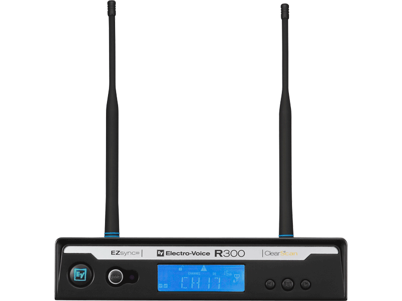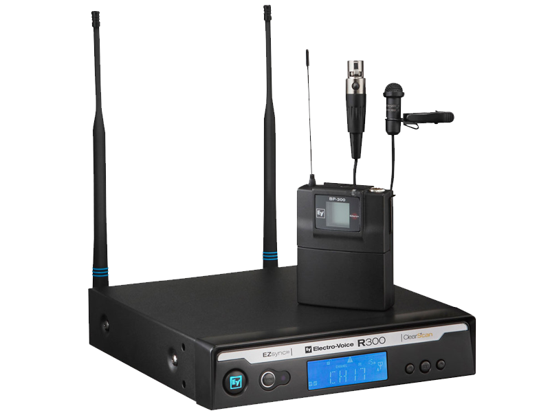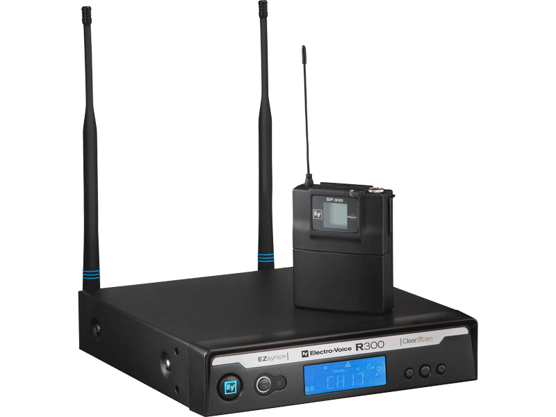 Lapel System – ULM18 Directional Microphone. The R300-L system includes the metal BP-300 bodypack transmitter, which uses two AA batteries. With ClearScan and EZsync, the R300-L is the easiest wireless system you will ever use for presentations and worship services. The directional ULM18 helps to reject noise from the surroundings and control audio feedback.