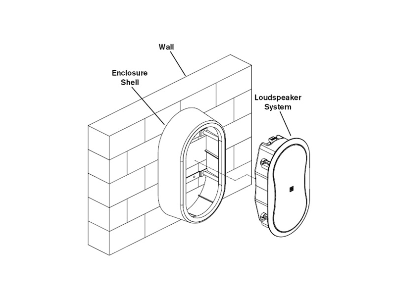 SE-42 External Wall-Mounting Kit features a supportive attachment shell that allows for an EVID FM4.2 (normally flush-mounted) loudspeaker to be externally mounted to a wall to obtain desired mounting location and sound coverage