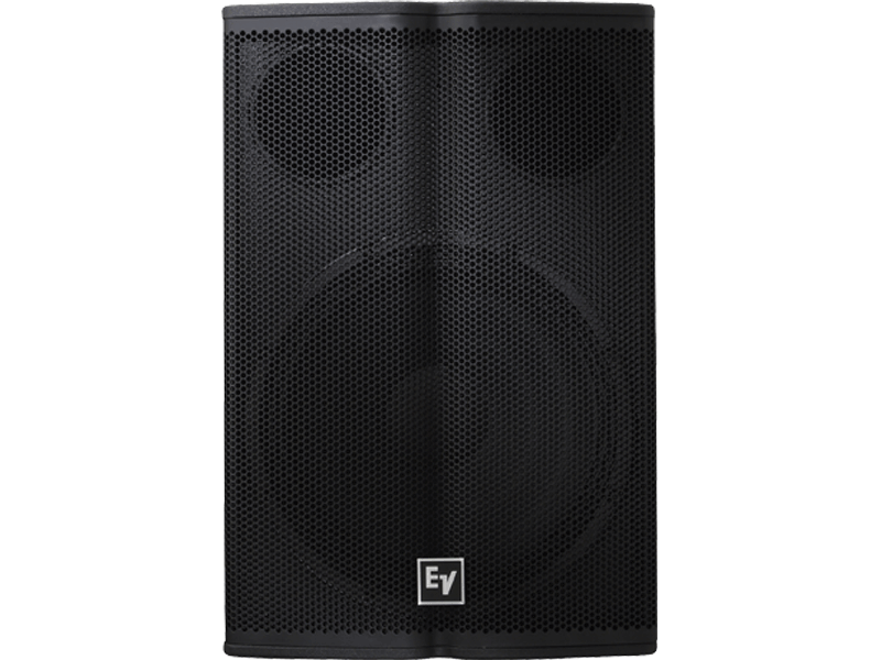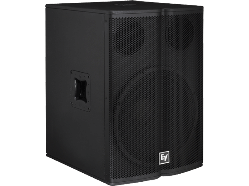 High-power LF supplement to TX1122 and TX1152. High-excursion EVS-18S woofer. 6 dB/octave low-pass filter for parallel connection without added amp. 100 dB sensitivity, 132 dB max SPL. Power handling: 500 W continuous, 2000 W peak. Top-side socket for speaker pole. Mount points (6) for optional wheel kit. Braced plywood/MDF enclosure. Black EVCoat™ finish