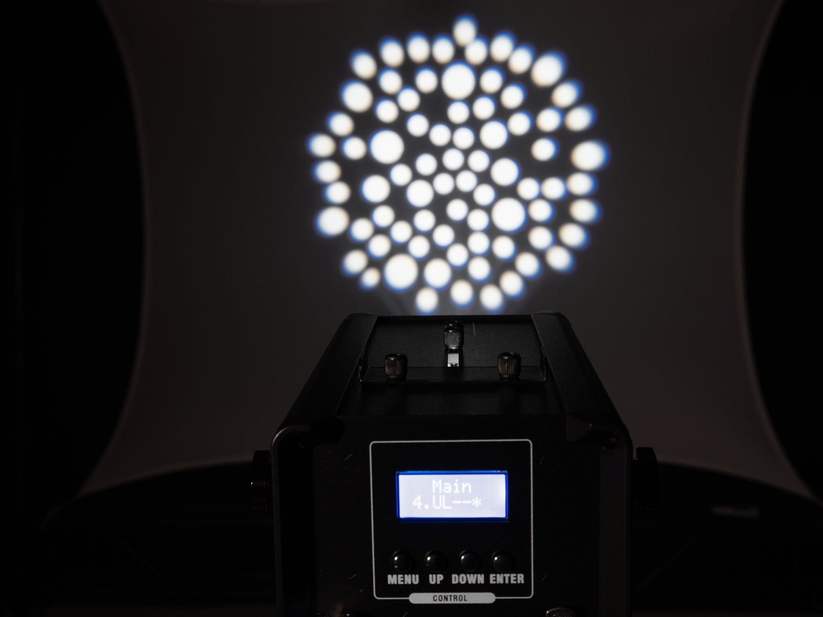 Gobo wheel with rotating gobos; Focus manual; Zoom manual; gobo wheel with static gobos
