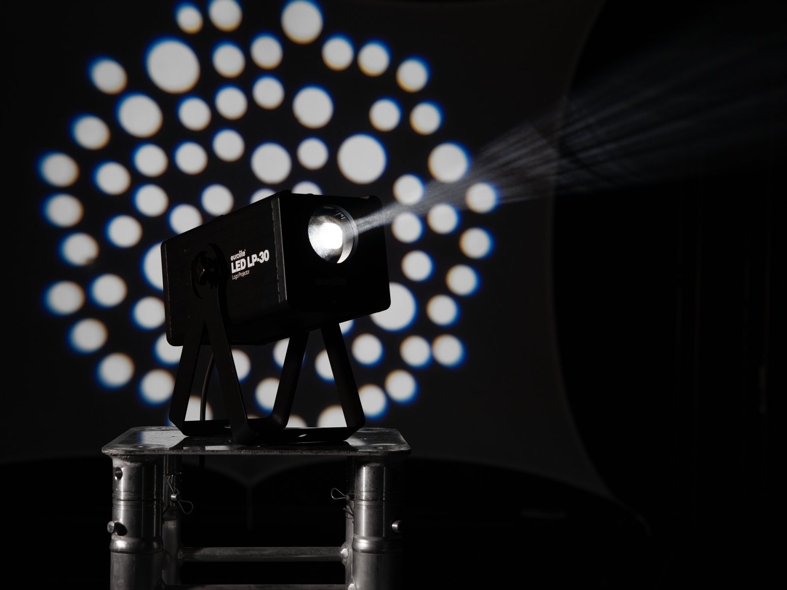 LED logo projector with 30 W LED, strobe, dimmer and gobo rotation, incl. IR remote control