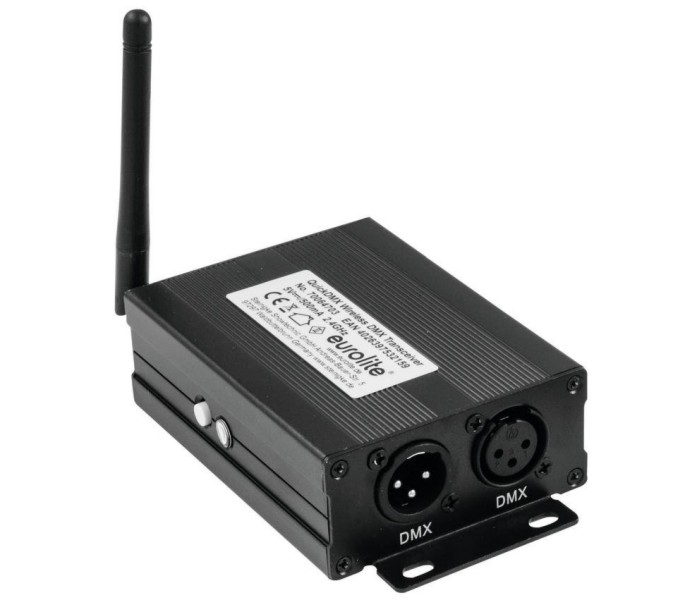 Wireless DMX system 2.4 GHz Compact DMX transmitter/receiver for the wireless transmission of up to 512 DMX channels DMX input and output, 3-pin XLR Auto-switching transceiver Wireless DMX eliminates extensive cabling between DMX controller and the DMX-controlled units in lighting installations Due to GFSK modulation with 78 channels, interference-free operation also alongside other QuickDMX transmitters and wireless devices in the 2.4 GHz band (e.g. Wi-Fi and Bluetooth)