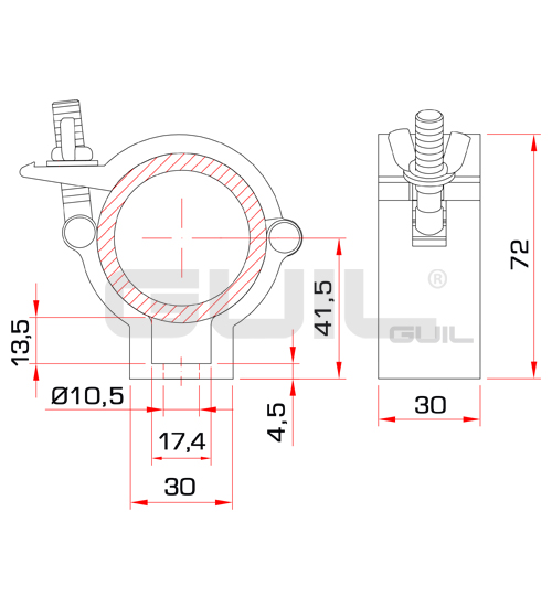 ABZ-00 Clamp coupler for Ø 50 mm tubes – Light-weight aluminium clamp coupler. – Practical multi-purpose coupler that is used in various fields (construction, entertainment industry, theatre etc.). – It combines strength and durability with a high level of safety. – Designed to be used on tubes with an external diameter of 50 mm. – It comes complete with bolt and wing nut to secure the load. – Substituting the bolt and nut for an eye nut or a second clamp (converting it into a swivel coupler) it can be used for other functions. – Manufactured with high resistance extruded aluminium.