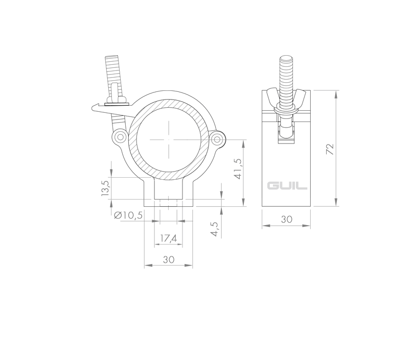 By removing the M8 joining screw the clamps can be used independently and then other fixtures can be added such as an eye nut, a bolt and wing nut (then being Ref. ABZ-20/N / Ref. ABZ-00/N) for other functions.