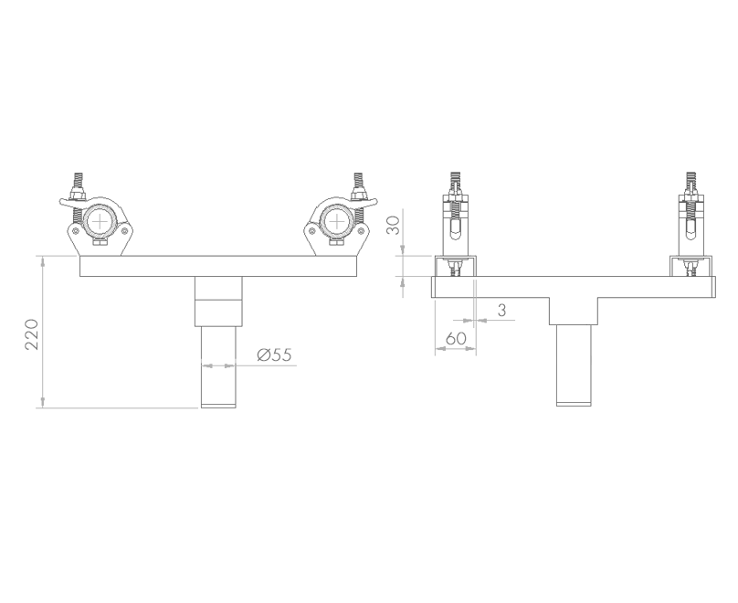Truss adaptor fitted with couplers & a Ø 55 mm spigot. For trusses from 20 to 40 cm