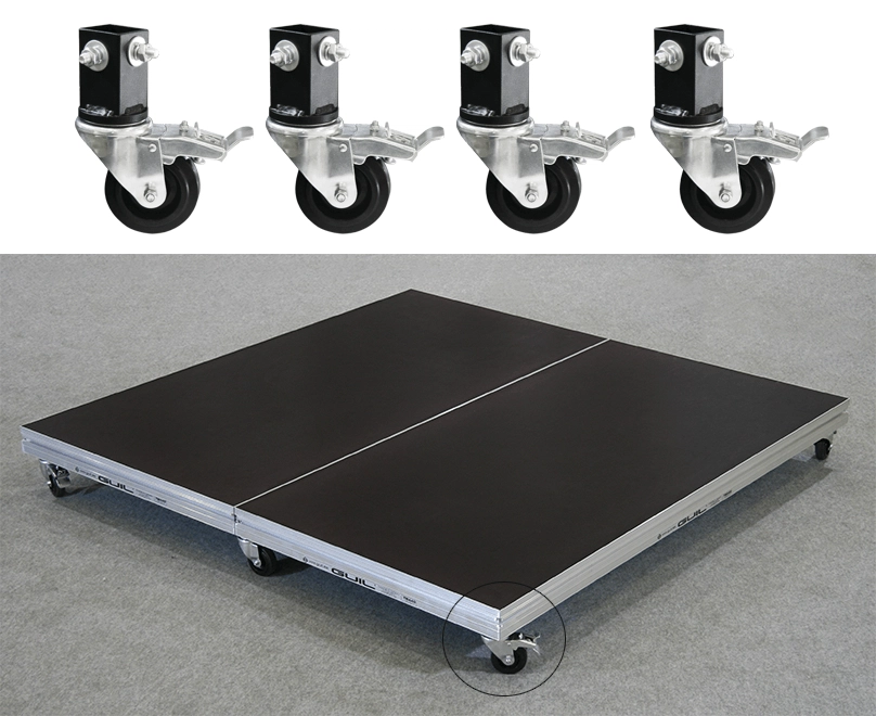 This useful accessory offers the option to turn a standard deck into a practical transport trolley or rolling riser.