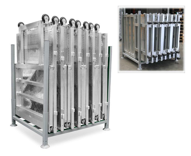Practical container specially designed to easily transport and store up to 8 Crowd Control Barriers and Gates.