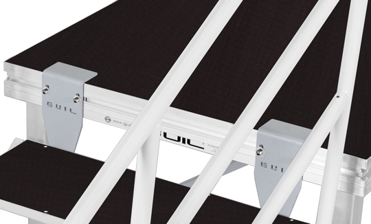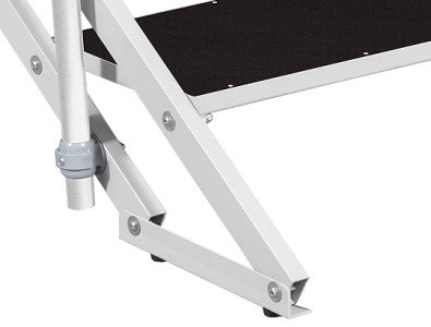 This fully adjustable access stair with folding design consists of four 300 x 800 mm steps and two modular handrails and all connectors needed for a quick and reliable attachment to the stage.
