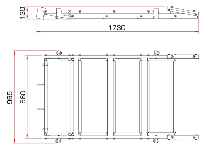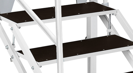ECP-4 stair can be used with stages from 700 mm to 1300 mm high by simply adjusting the distance between the steps