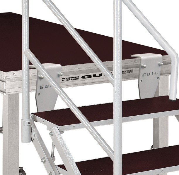 Its unique hinge design allows the adjustment of the stairs to different stage heights, making this stair system a very practical element.