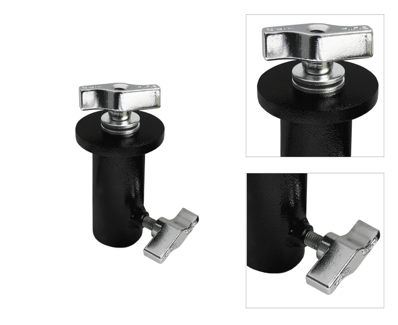 Practical adaptor to attach spotlights, followspots, electronic scoreboards or any type of device that has a yoke, which we want raise using a speaker stand or lifting tower. It is supplied complete with a metallic ergonomic knob to secure the light fixtures to the M10x30 threaded bolt.