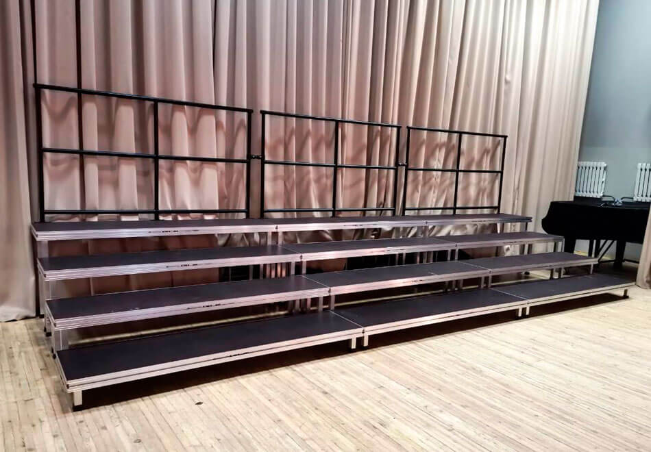GR-2 choral risers are stylish at the same time as being strong, versatile and sturdy. Their quick and easy set-up, along with the possibility of being able to manufacture any shape or size, makes our choral risers the perfect product for any type of choir; both for standing choirs and for choirs who want to put chairs on the riser.