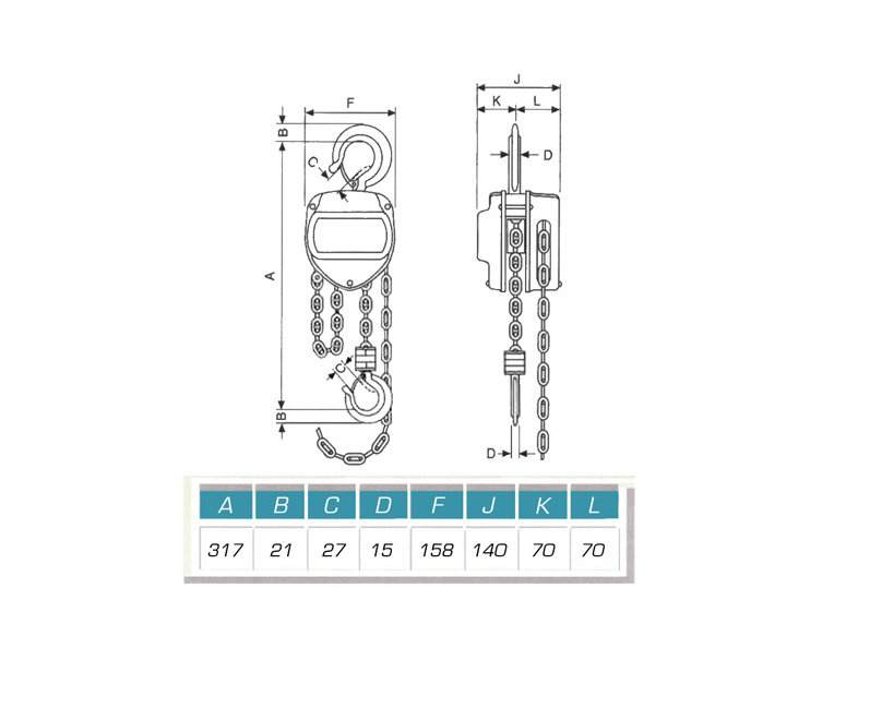 Chain hoist. Lifting Height: 6 m. Load capacity: 1000 kg