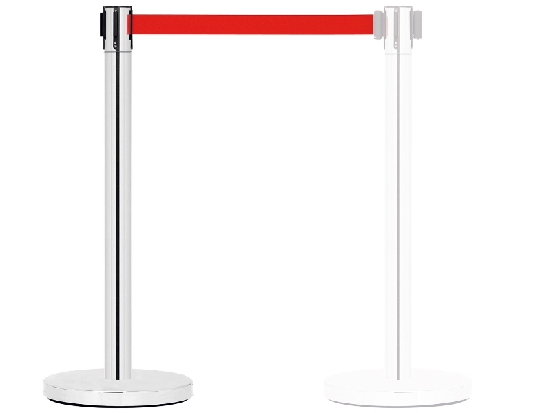 PST-11 stanchion with a 3 metre retractable belt and stylish new base design has four-way connectivity; 3 receiving points. It has a blocking system to stop people from unlinking the belts.