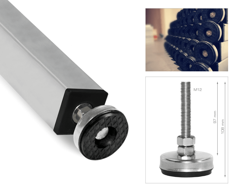 50 x 50 mm Fixed height leg with adjustable leveller