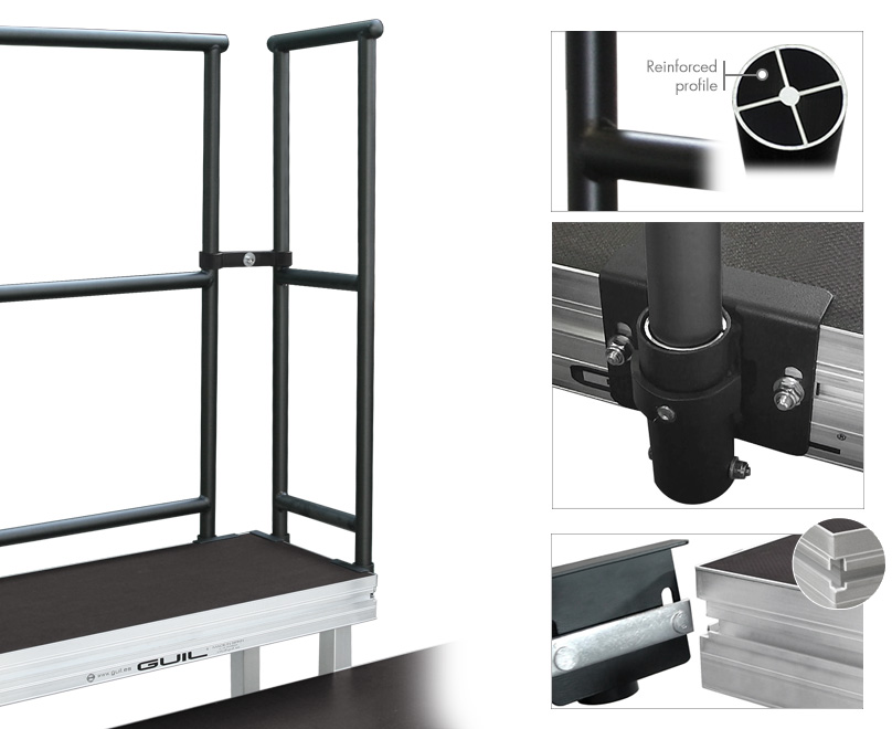 0.5 m Safety Rail for GUIL stages and Seated Risers. Made in reinforced aluminium